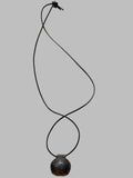 DESCRIPTION: Handcrafted, Antique Brass and Italian black leather statement necklace by Designs by Sonia. This vintage piece can also be displayed on your wall as a mini sculpture. Can be worn with urban street wear or Avant-Garde clothing.